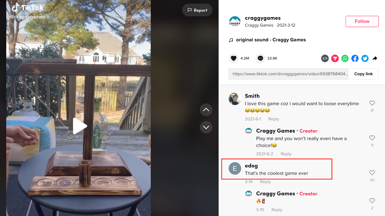 Take Craggy Games as the perfect example. They displayed their head-to-head ring toss game in a short video on TikTok. The next thing you know, it has almost 40 million views.