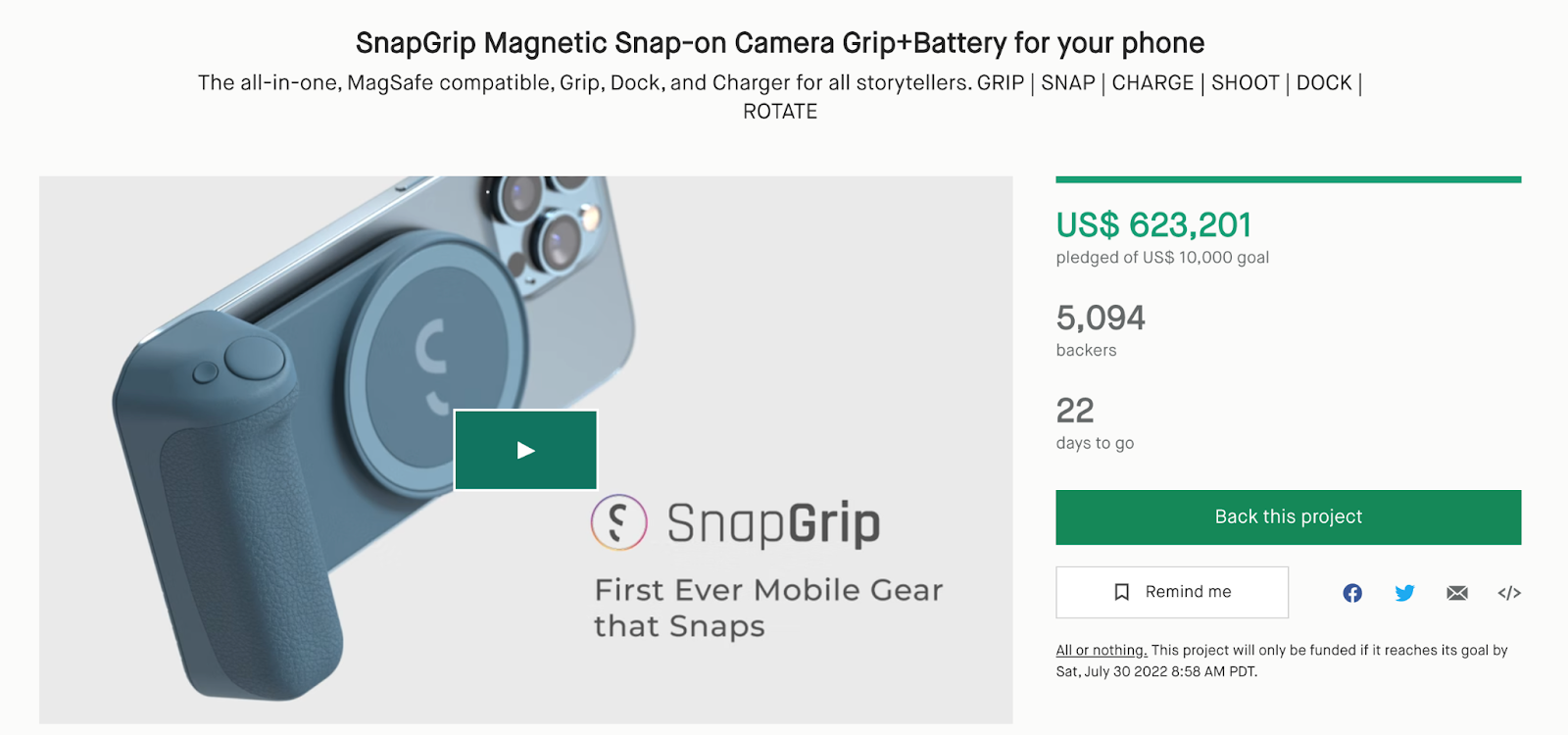 Take this SnapGrip camera grip and battery for your phone as an example.