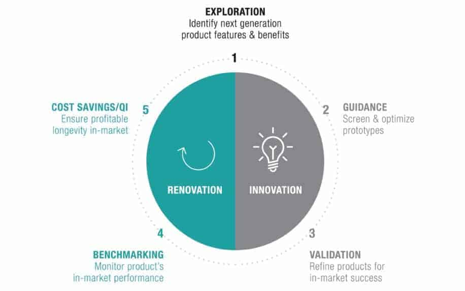 Think of product testing as a combination of innovation and renovation. In the innovation stage, you focus on identifying new product features, optimizing prototypes, and refining for market success. Once your product hits the market, you switch gears to the renovation stage by tracking your product’s performance and ensuring longevity in a crowded market.
