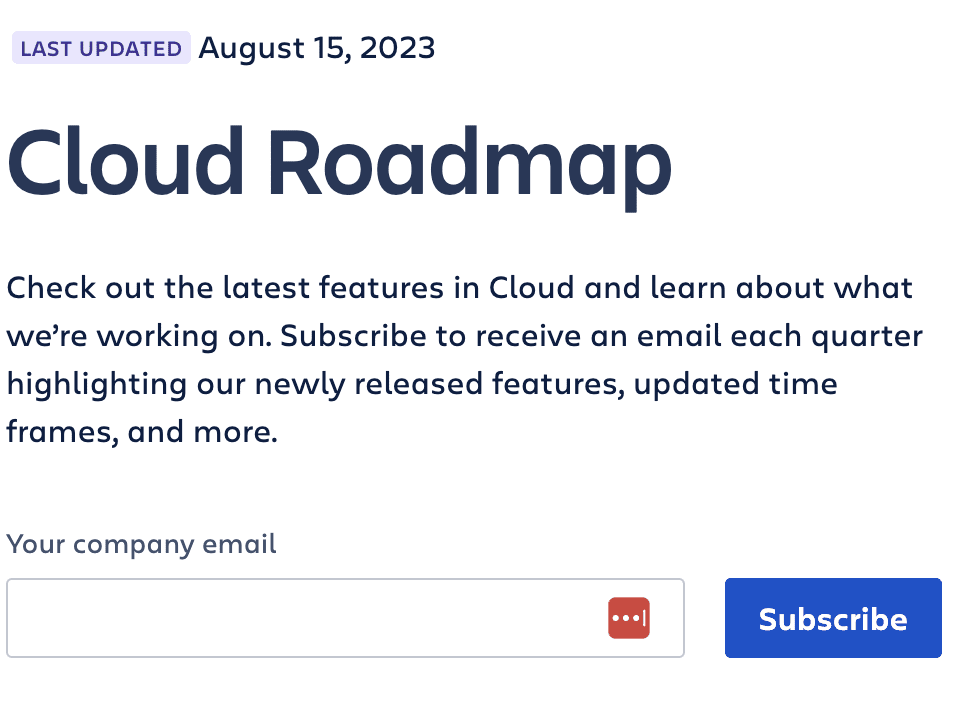 At the very top of the page you can subscribe to Atlassianâs newsletter to stay in the loop. Weâre all about engaging with users, and this is one of the ways you can do that.