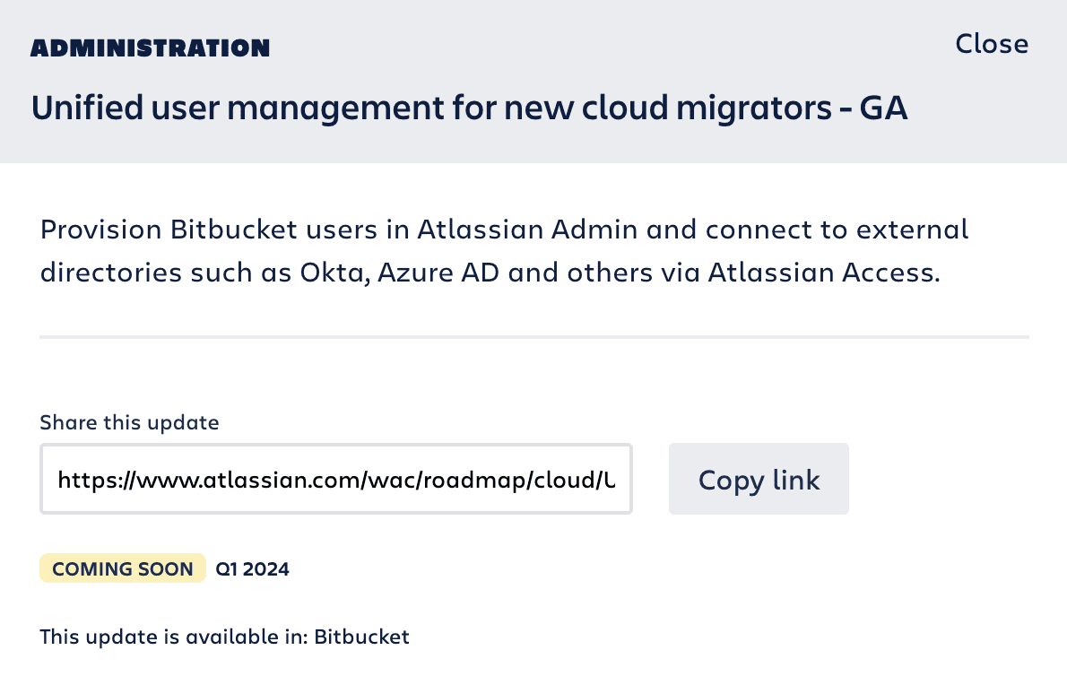 If you click on any roadmap item, you can also copy the link to share this update.