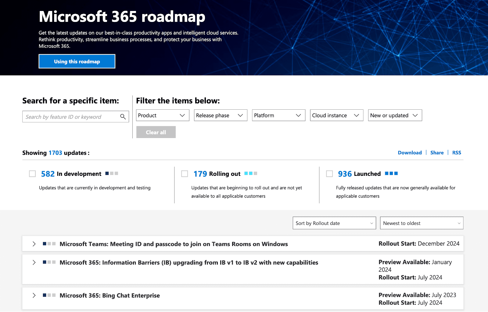 Microsoftâs roadmap allows you to filter by:
